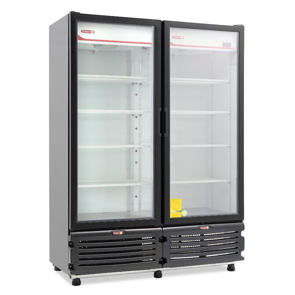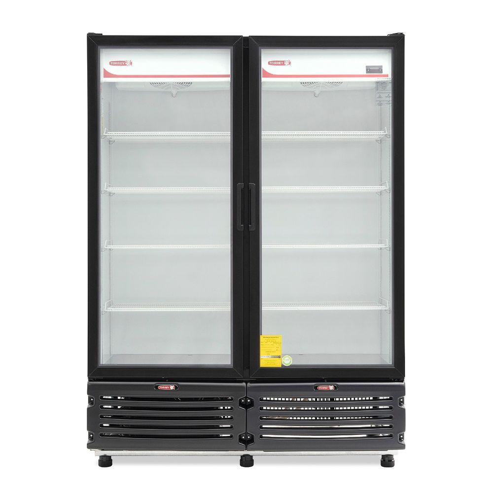 Refrigerador refresquero Torrey de doble puerta de vidrio con capacidad de 42 pies y gabinete de color negro – TVC-42