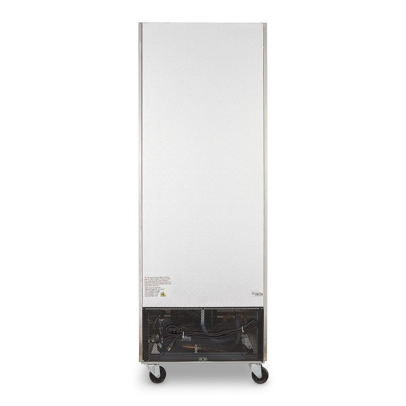 Refrigerador vertical de acero inoxidable de 1 puerta sólida.